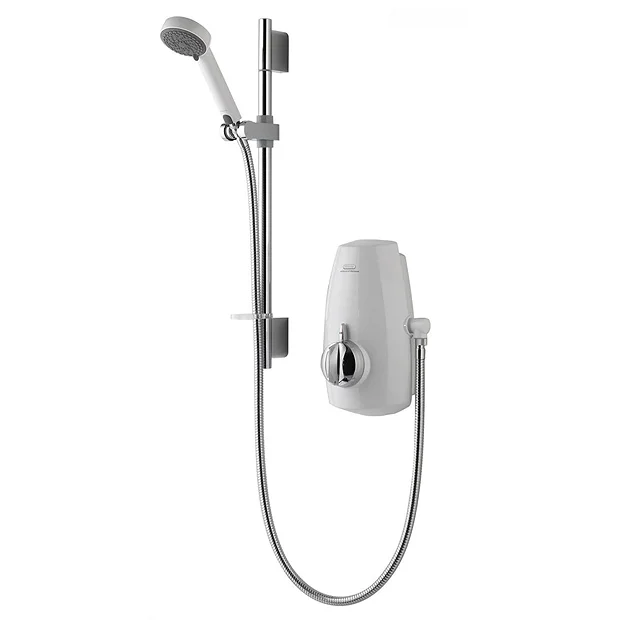 Aqualisa – Aquastream Thermo Power Shower with Adjustable Head – White/Chrome – 813.40.21