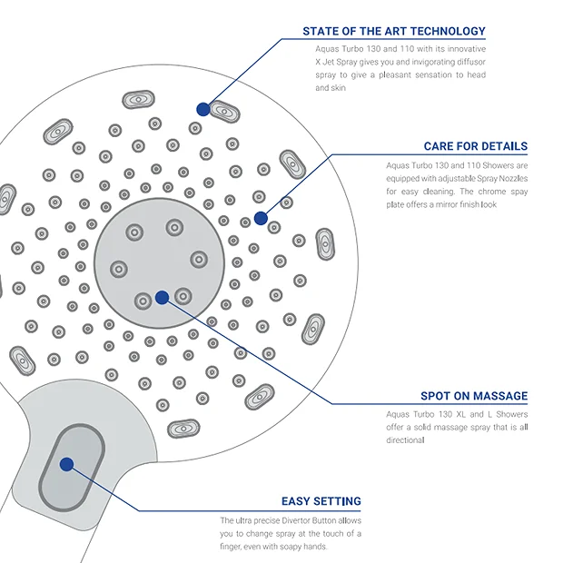 - 3 Spray Patterns Hand shower with click diverter: X-Cite, Rain, Massage