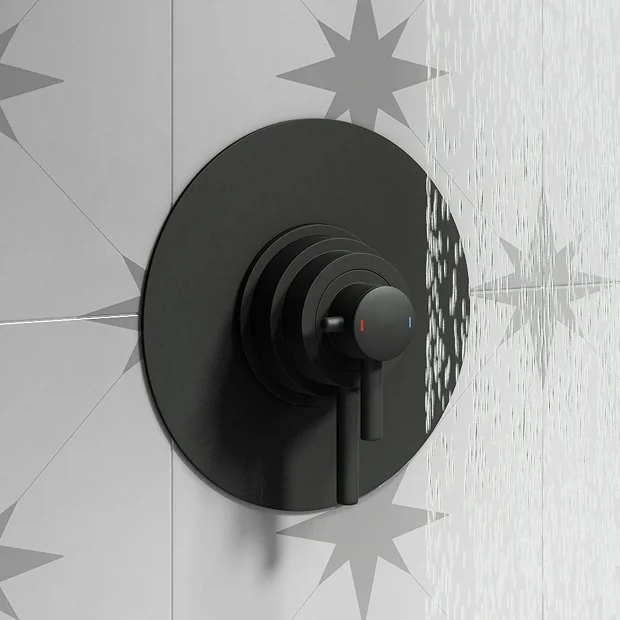 The minimalist Arezzo matt black thermostatic shower valve with round backplate offers thermostatic showering with two easy to operate controls, one operates flow control whilst the other allows temperature selection. Shower package comes with a 200mm fixed wall mounted shower head, this valve has the added safety benefit of a built in anti-scald device should the cold water supply fail. The matt black Arezzo dual concealed thermostatic shower valve pack adds a touch of sophistication and style in any bathroom.