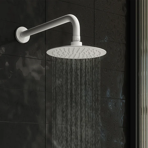 The Arezzo Concealed Individual Stop Tap and Thermostatic Control Shower Valve Pack features a clean minimalist matt white finish with a striking modern round design. This shower valve pack is perfect for installing in a concealed arrangement, pack comes with a matching 200mm wall mounted fixed shower head including swivel joint and arm.Â