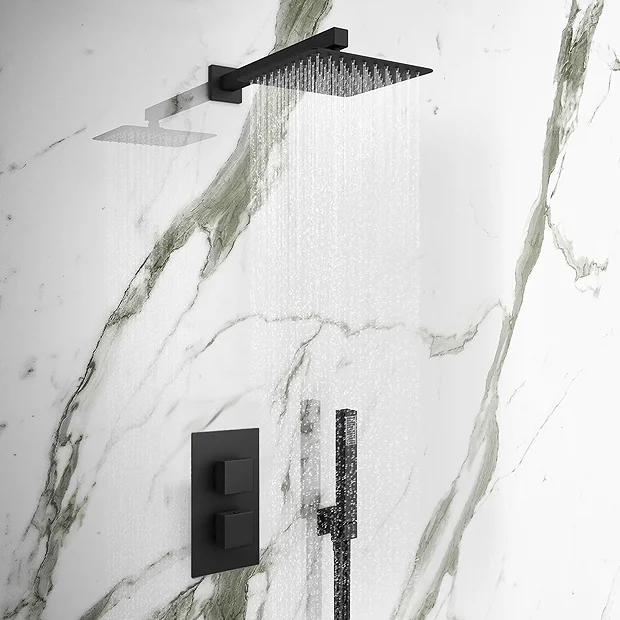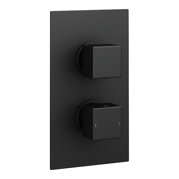 The Arezzo Concealed Thermostatic Shower Valve with Diverter features a striking geometric design with a contemporary matt black finish. Offers thermostatic showering via two easy-to-operate controls for temperature and flow.
