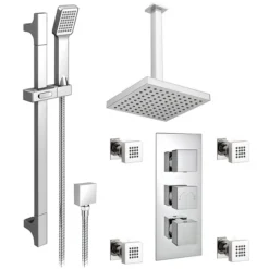 The Astoria triple concealed thermostatic shower valve brings substantial elegance to the modern bathroom. This concealed triple shower valve offers thermostatic showering via three easy-to-operate controls.