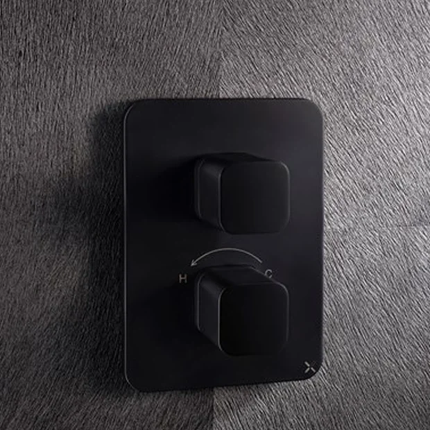 One outlet CROSSBOX Showers deliver water from a single source i.e. Fixed Head. If you want a quicker and easier way to install a shower valve that projects less, choose CROSSBOX. Trim sets include flow control, thermostat, backplate and handles.