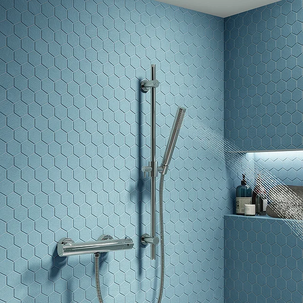 This sleek Thermostatic Bar Shower Valve from Cruze features two simple to use controls – one for flow and one for temperature. Thanks to its clever anti-scald technology, you can rest assured the water will never exceed an optimal 38°C. The shower mixer bar is constructed from solid brass with a chrome finish. Why not tie this modern look together with some understated curved bath taps?