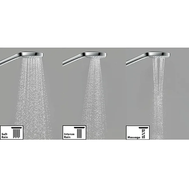 The hansgrohe Ecostat E Square Complete Shower Set with Shower Slider Rail Kit promises you showering indulgence on a grand scale. The Ecostat E Thermostat 2 Function Concealed Finish Set operates the fixed head and shower handset and features a thermostat cartridge with an adjustable temperature limit. The Crometta E 240 shower heads Rain spray is perfect for rinsing shampoo out of your hair while the QuickClean rub clean nubs loosens any limescale deposits making sure your hand shower looks beautiful, and stays working for longer. The Croma Select E Vario 3 Spray Shower Slider Rail Kit allows you to fix the shower head to the perfect height – whatever your size, or showering position. It features three spray functions for an energising, invigorating showering experience.