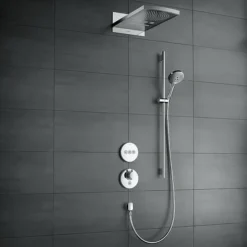 This innovative ShowerSelect S Valve features push button technology so you can easily switch between the different spray types on your overhead or hand shower. Designed to run 3 outlets, it incorporates a thermostatic start/stop cartridge but requires a separate temperature control. Made from high quality materials and beautifully finished in chrome.