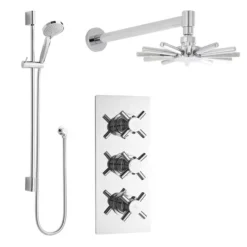 The Kubix twin concealed thermostatic shower valve from Hudson Reed is a luxury showering product complete with diverter. This Concealed Thermostatic Twin Shower Valve offers thermostatic showering via two easy-to-operate controls.
