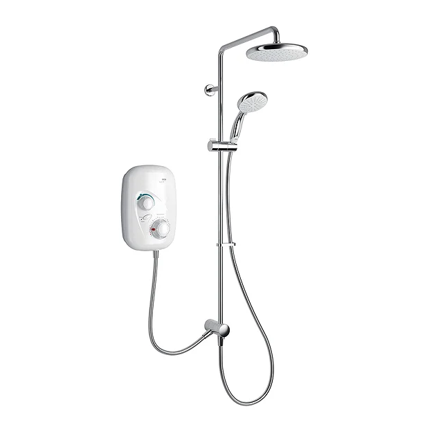 Bursting with performance. The Mira Event XS Dual Outlet Thermostatic Power Shower brings safe, powerful showering with the added benefit of a dual shower. The dual outlet shower diverts easily between the 200mm overhead deluge and seperate 90mm handshower. Suited to homes with a low pressure water system and plentiful supply of hot water.