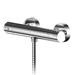 This stylish Nuie Sanford bar shower valve features modern sleek styling with a chrome finish and has been constructed from brass and ABS. It offers thermostatic showering with two easy to operate controls, one operates flow control whilst the other allows temperature selection. Pair the with a modern riser kit for a clean, and modern shower look.