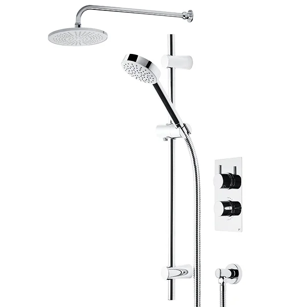 Roper Rhodes collection of concealed all-in-one shower systems offer a luxurious showering experience combined with good looks. The Event Round Dual Function Shower System with Fixed Shower Head consists of a two way diverter shower valve, Round 220mm shower head, adjustable fixed arm, Wave slide shower rail, shower hose, round single function handset and wall elbow. Comes TMV2 approved and is suitable for all plumbing systems with a minimum pressure of 0.5 bar and above.